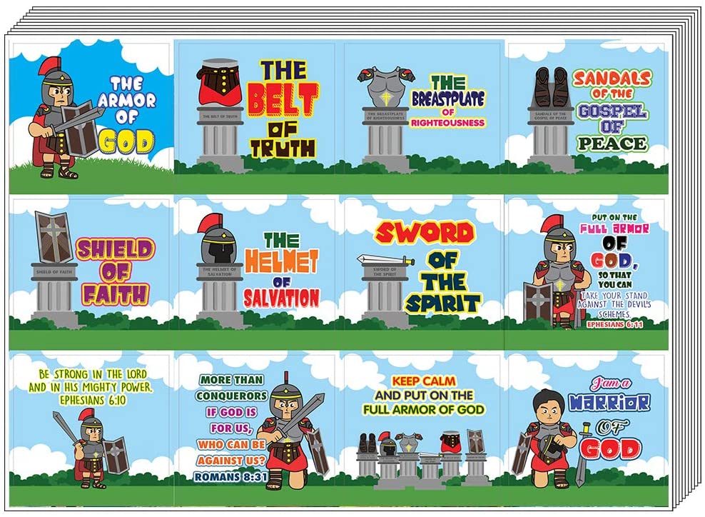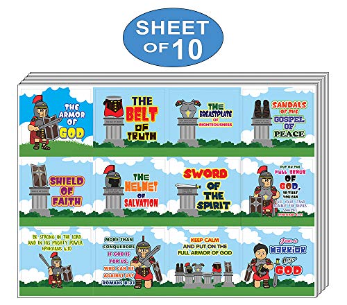 Armor of God Stickers Series 2 (10-Sheet) - VBS Sunday School Easter Baptism Thanksgiving Christmas Rewards Encouragement Gift