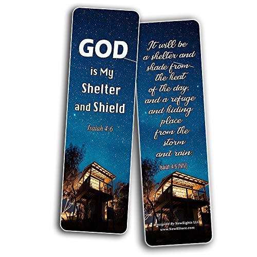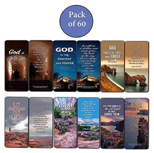 - CHRISTIAN BOOKMARKS SCRIPTURES TO HELP YOU SURVIVE THE STORMS OF LIFE (60 PACK) - 6 unique designed bookmarks x 10 pcs each design. Designs include NIV inspirational bible texts: God is With Me Psalm 23:4, God is My Shelter and Shield Isaiah 4:6, God cares for those who trust in Him Nahum 1:7, TAKE REFUGE in the LORD Psalm 57:1, I Am Protected Psalm 32:7, I Am Protected Psalm 32:7, He will carry them. Psalm 55:22. Easter Day Basket Stuffers