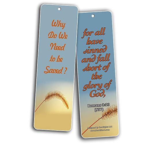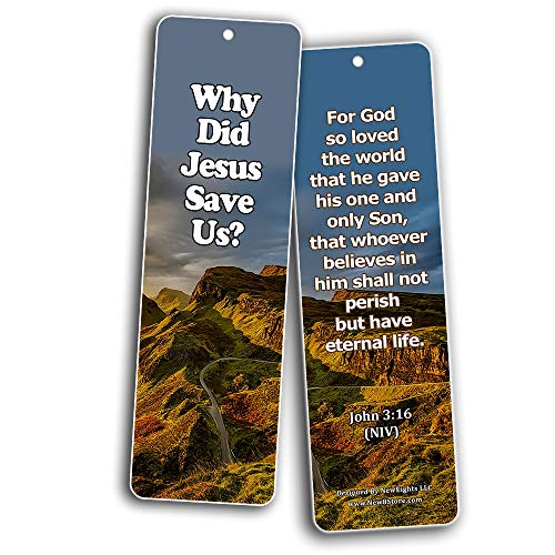 - GOSPEL BOOKMARKS (30 PACK) - 6 unique designed bookmarks x 5 pcs each design. Designs include NIV inspirational bible texts: Who is Jesus? 1 John 4:2, Why Do We Need to be Saved? Romans 3:23, How Does He Save? 1 John 2:2, Whom Does Jesus Save? John 1:12, Why Did Jesus Save Us? John 3:16, Christ Carried Our Sins on the Cross 1 Peter 2:24.
