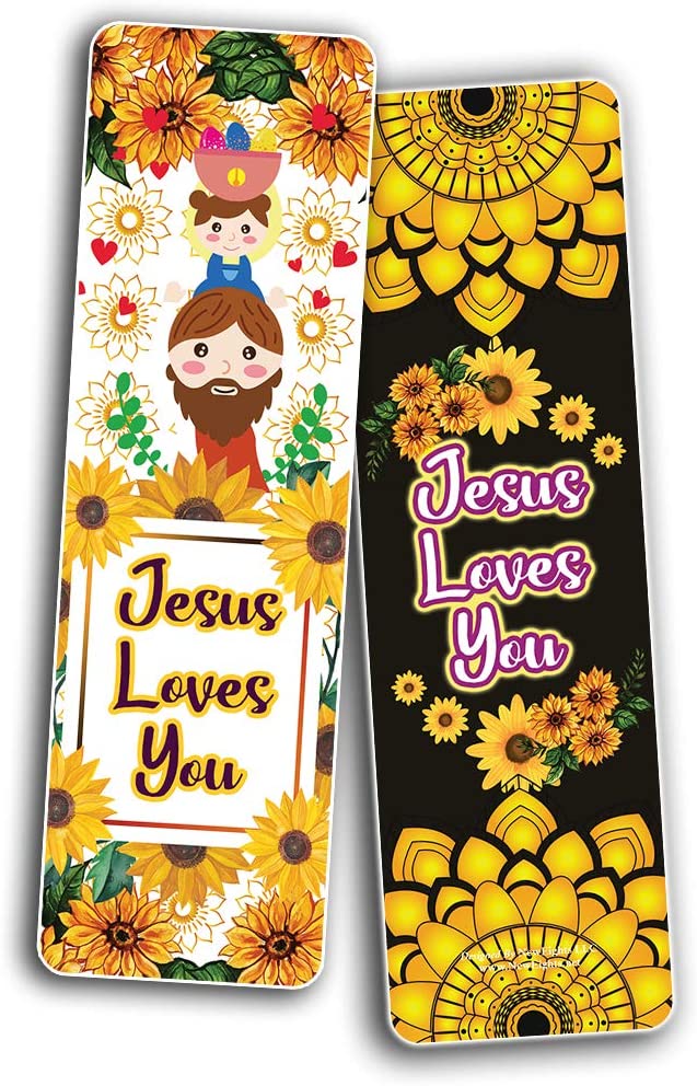 Jesus Loves You Bookmarks - Sunflower Theme Cards (30 Pack)