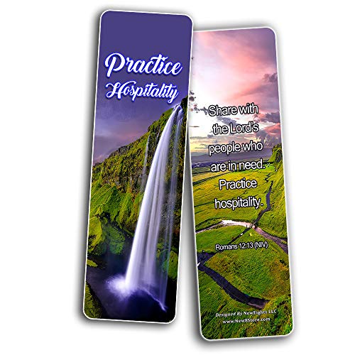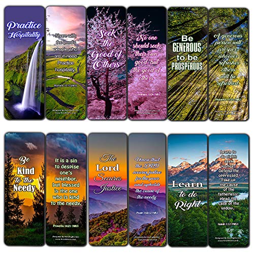 - KINDNESS SCRIPTURES CARDS BOOKMARKS (12 PACK) - 6 unique designed bookmarks x 2 pcs each design. Designs include NIV inspirational bible texts: Practice Hospitality Romans 12:13, Seek the Good of Others Corinthians 10:24, Be Generous to be Prosperous Proverbs 11:25, Be Kind to the Needy Proverbs 14:21, The Lord Secures Justice Psalm 140:12, Learn to do Right Isaiah 1:17.