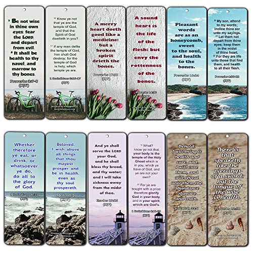 KJV Religious Bookmarks - Bible Verses About Health (12 Pack) - Collection of Bible Verses On How To Achieve Optimum Health