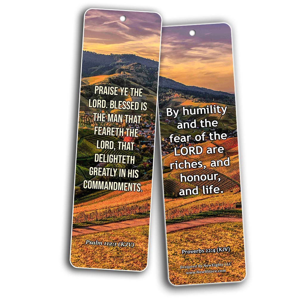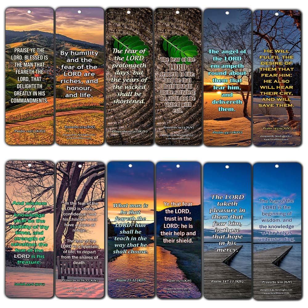 - KJV SCRIPTURES BOOKMARKS - FEAR OF THE LORD (12-PACK) - 6 unique designed bookmarks x 2 pcs each design. Designs include inspirational KJV bible texts: Psalm 112:1, Proverbs 22:4, Proverbs 10:27, Proverbs 19:23, Psalm 34:7, Psalm 145:19, Isaiah 33:6, Proverbs 14:26-27, Psalm 25:12, Psalm 115:11, Psalm 147:11, Proverbs 9:10. Easter Day Basket Stuffers