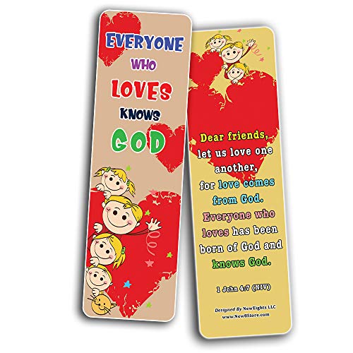 - LOVE ONE ANOTHER BIBLE VERSES BOOKMARKS FOR KIDS (30-PACK) - 6 Unique Designs of Inspirational Christian Quotes from Bible ( 6 X 5 pcs each - Pack of 30).