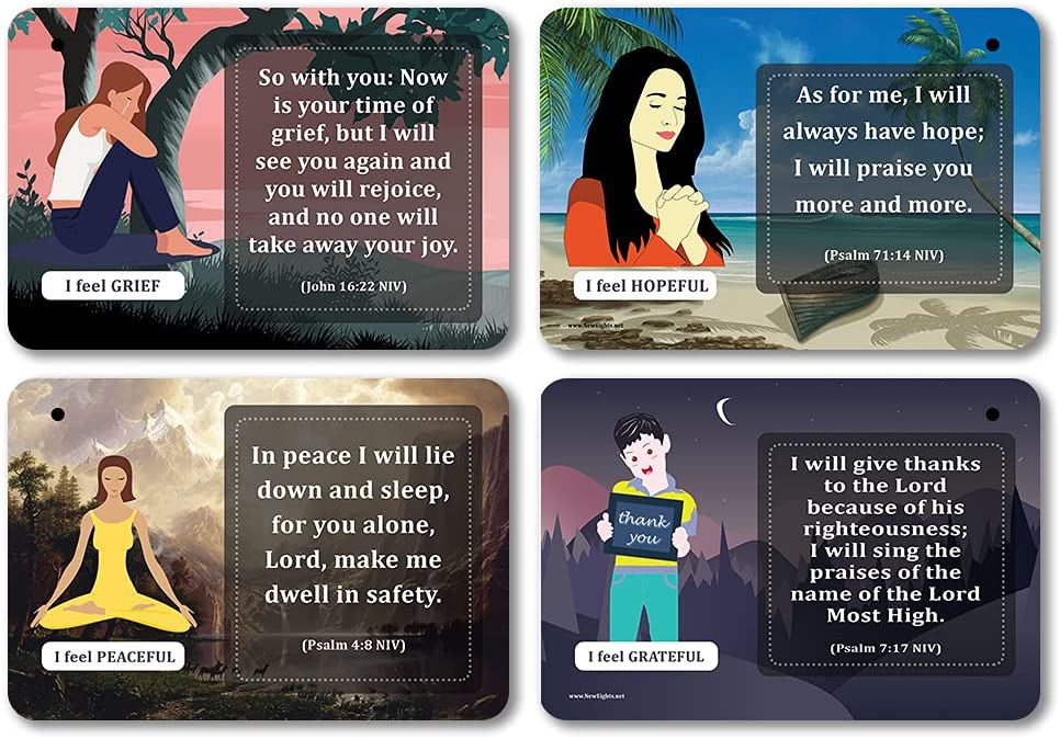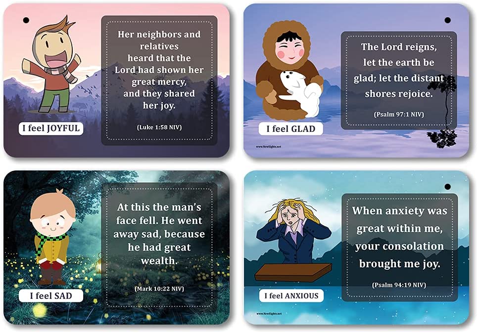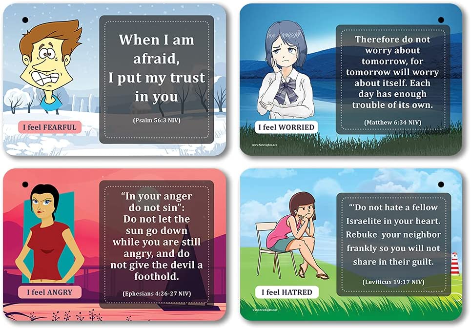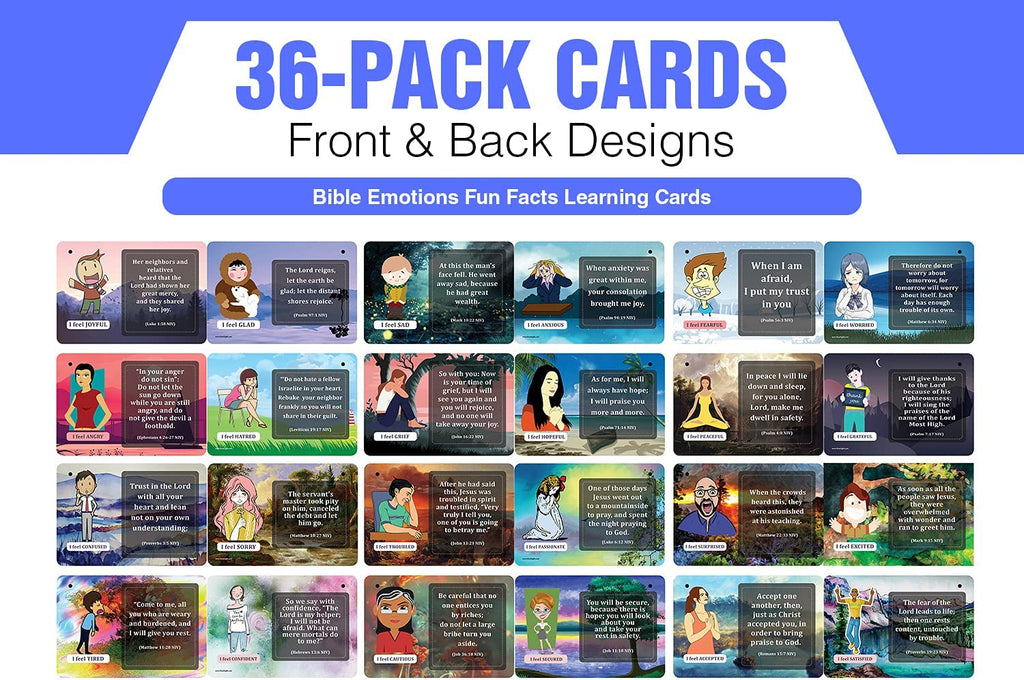 NewEights Bible Emotions Fun Facts Learning Cards (3 Set x 12 Cards) - Church Stocking Stuffers Gifts for Church Members, Adults, Teens, Kids
