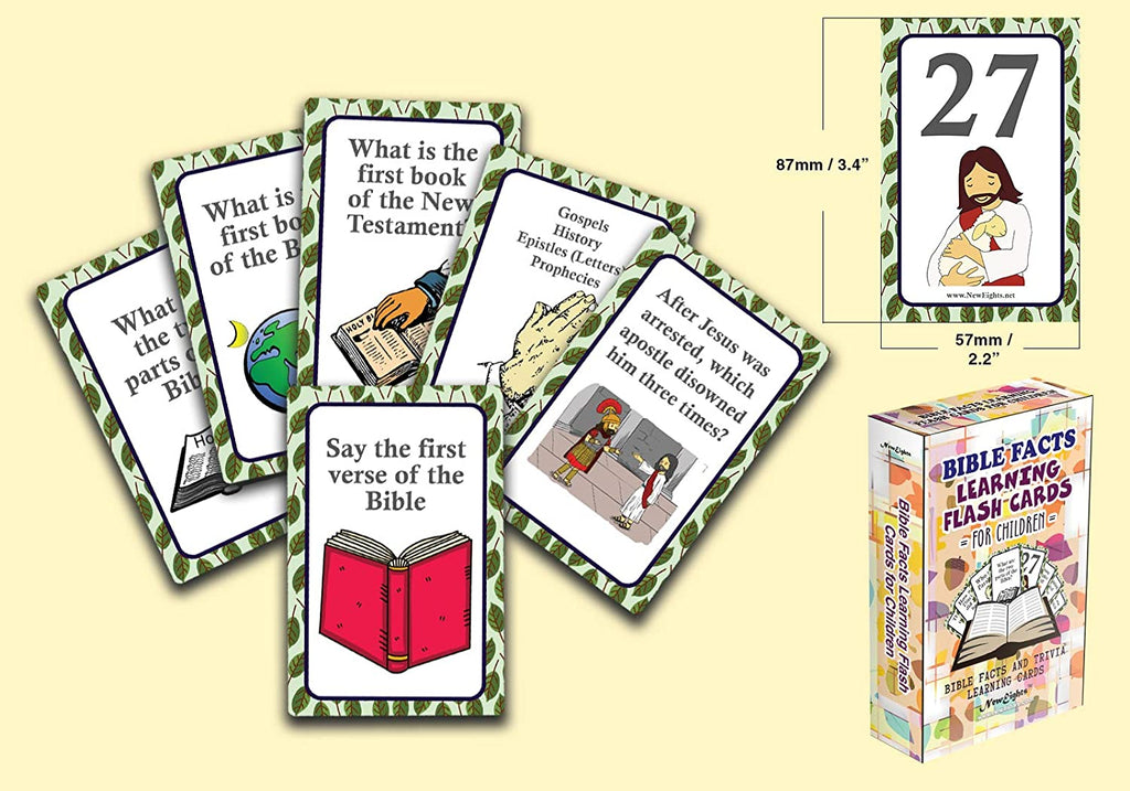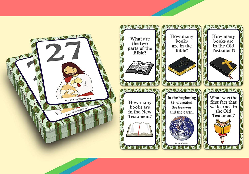 - NewEights Bible Facts Learning Flashcards for Children (4-Deck) – High Quality Standard Size Deck Learning Cards for Boys Girls Kids Children (54 card set x 4 Deck of Cards = 216pcs).