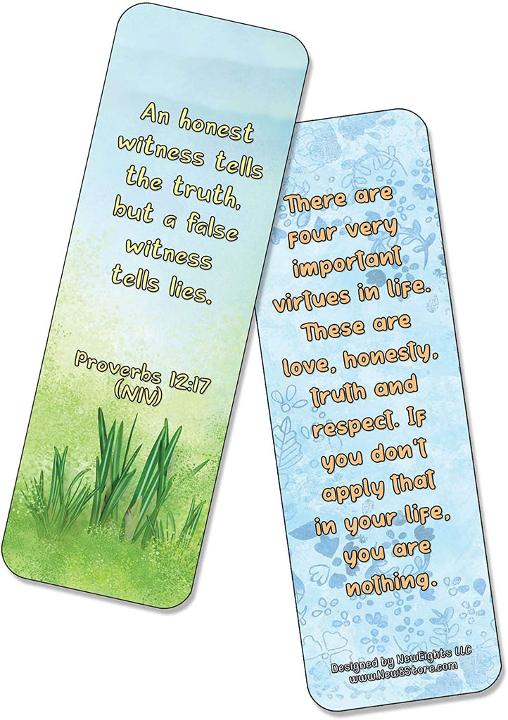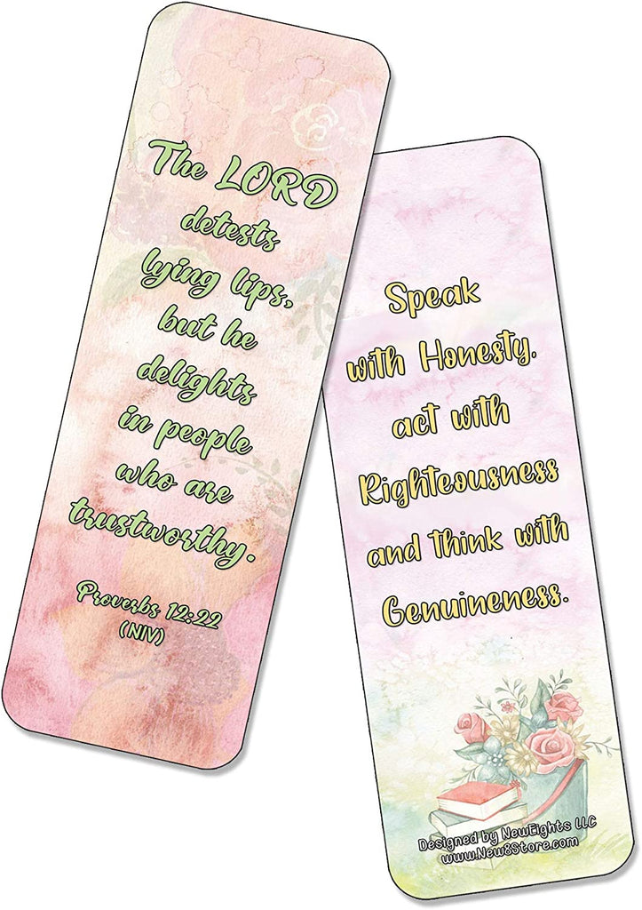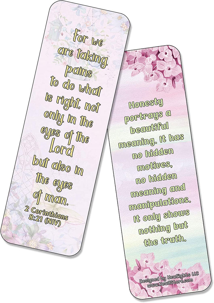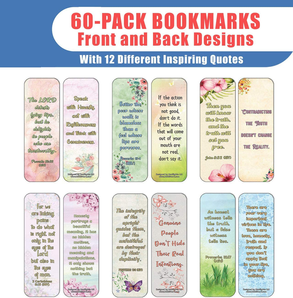 NewEights Famous Verses and Quotes on Honesty Bookmarks (60-Pack) - Daily Motivational Rewards Gift Giveaways. This bookmark set contains 6 Bible verses and 6 inspirational quotes on honesty.