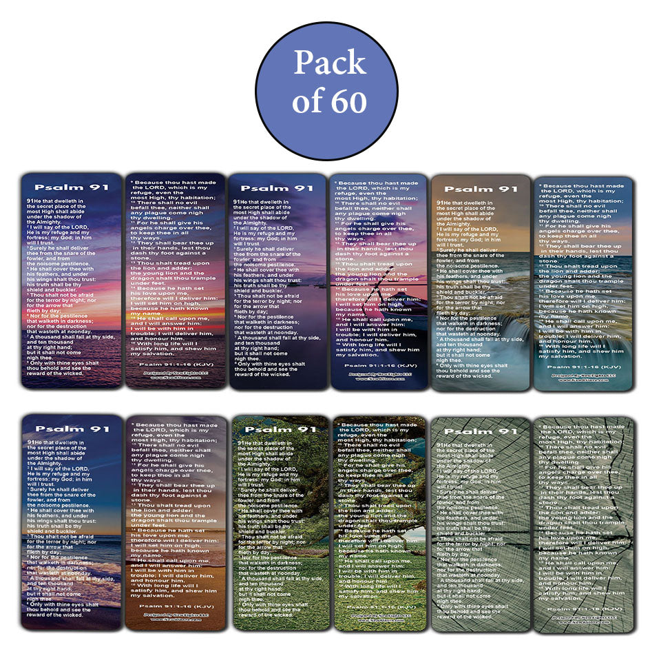 - NewEights PSALM 91 BOOKMARKS CARDS KJV (60-PACK) - 6 Unique Designs of Inspirational Christian Quotes from Bible ( 6 X 10 pcs each - Pack of 60).