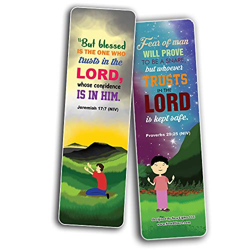 - BOOKMARKS WITH UNIQUE DESIGNS & PRINTED ON BOTH SIDES. Front and back of the bookmark displays the quoted biblical texts that are designed to encourage the user. plans to prosper you and not to harm you, plans to give you hope and a future, I can do all this through him who gives me strength, blessed is the one who trusts in the Lord, he will never leave you nor forsake you, whoever trusts in the Lord is kept safe, Blessed are those who mourn, for they will be comforted