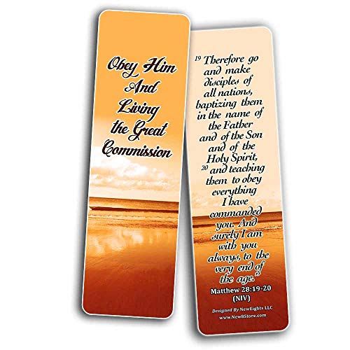 - TOP BIBLE VERSES ON GOD?S WILL BOOKMARKS (60-PACK) - 6 unique designed bookmarks x 10 pcs each design. Designs include inspirational NIV bible texts: Come To Jesus For Salvation Romans 10:9, Obey Him And Living the Great Commission Matthew 28:19-20, Living in the Blessings of God Psalm 1:1-2, Treat Others with Love Matthew 25:40, Glorify God In Whatever You Do 1 Corinthians 10:31, Trust God and Leave Everything in His Hands Proverbs 3:5-6. -Easter Day Basket Stuffers